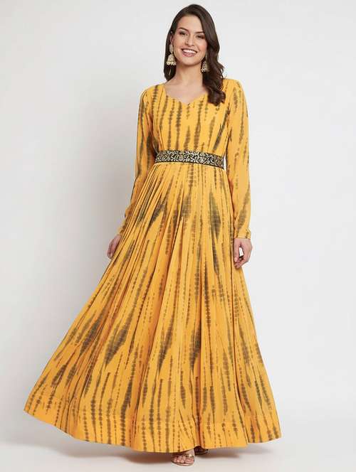 women yellow crepe fit & flare dress