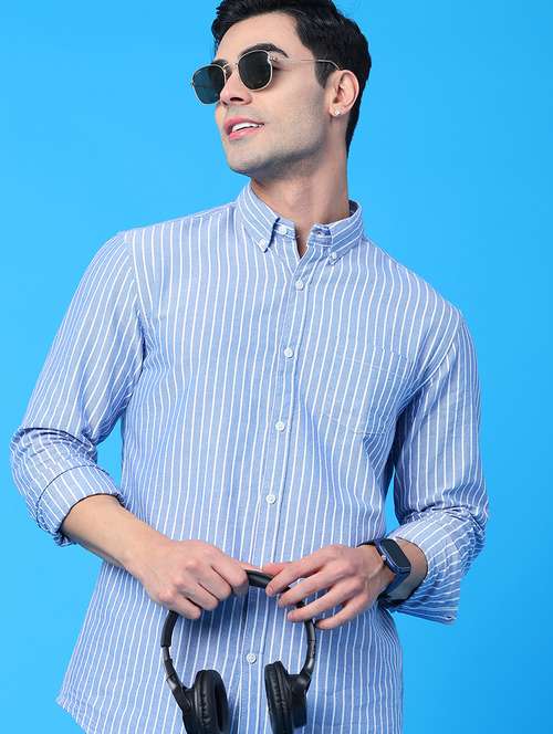 men striped long sleeve regular fit casual shirt