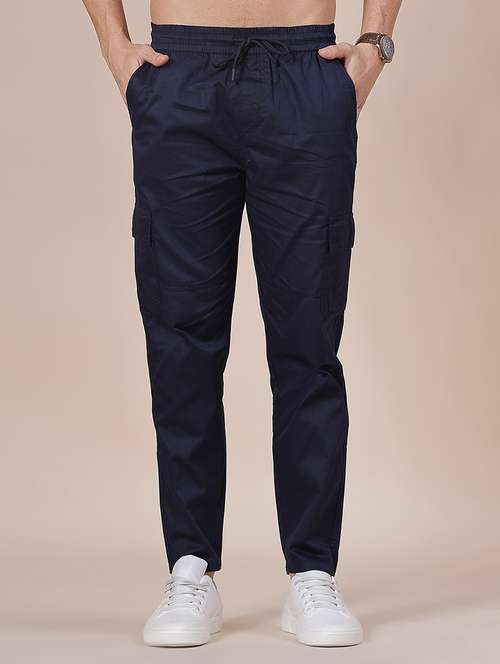 men solid mid rise regular fit cargo