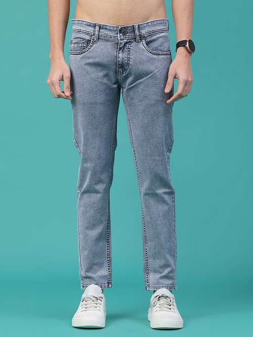 men plain mid rise full length slim fit jeans