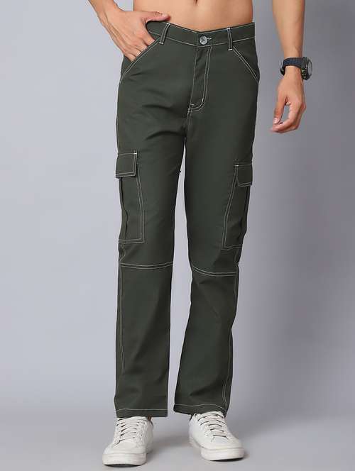 men olive cotton blend cargo pants