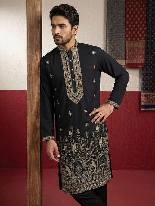 men embroidered mandarin neck long kurta