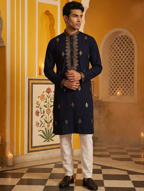 men embroidered mandarin neck long kurta
