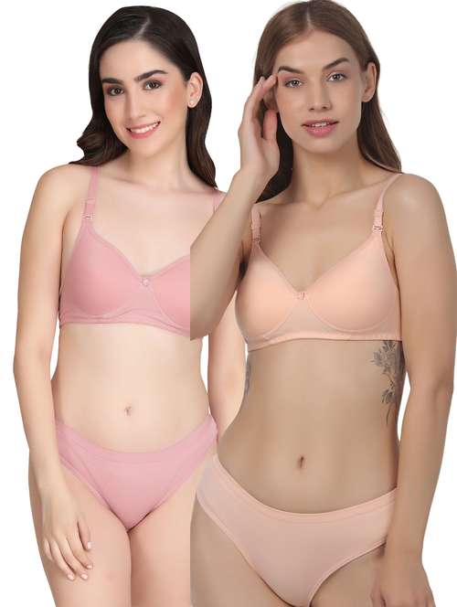 women pack of 2 solid bra and panty set