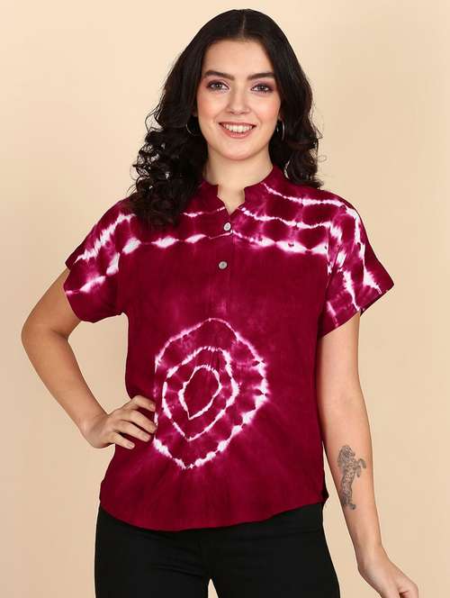 women tie & dye short sleeve regular top