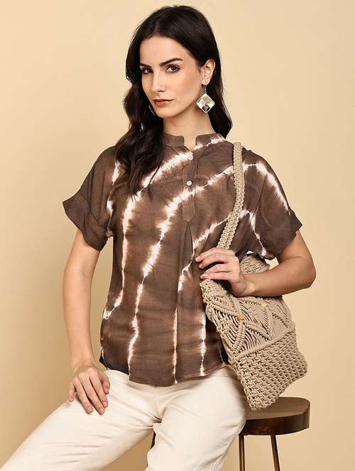 women ombre print mandarin collar regular top