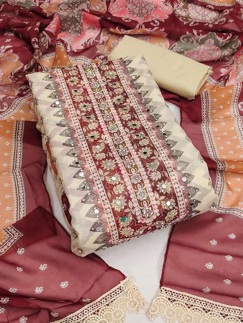 women solid with work unstitched suit set