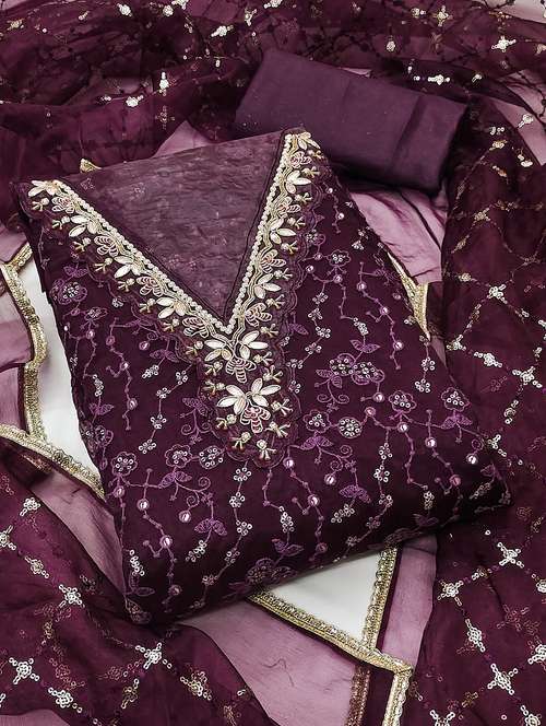 women solid with work unstitched suit set