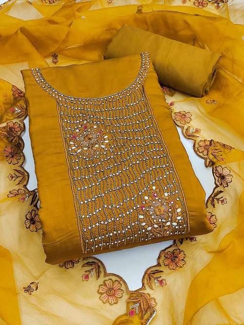 women solid with work unstitched suit set