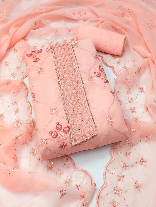 women solid with work unstitched suit set