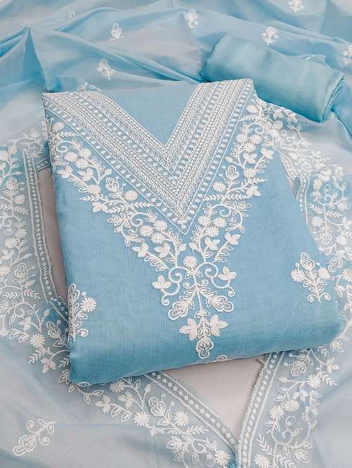 women solid with work unstitched suit set