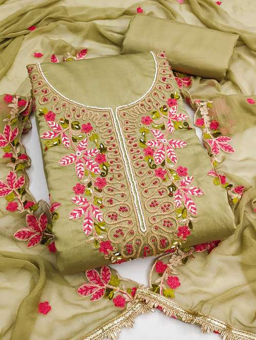 women solid with work unstitched suit set
