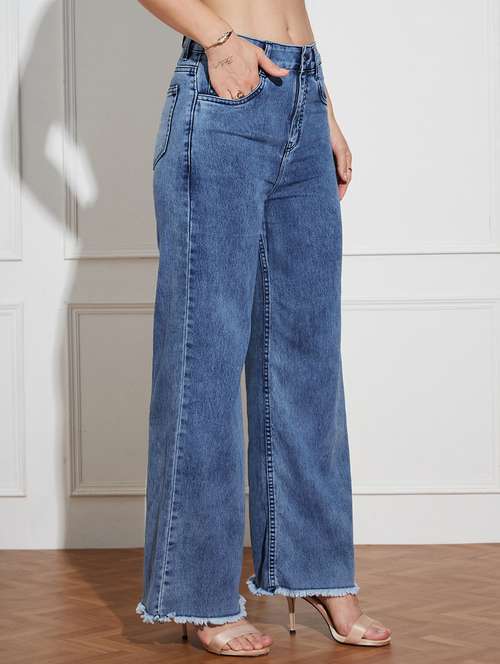 women solid high rise wide leg jeans