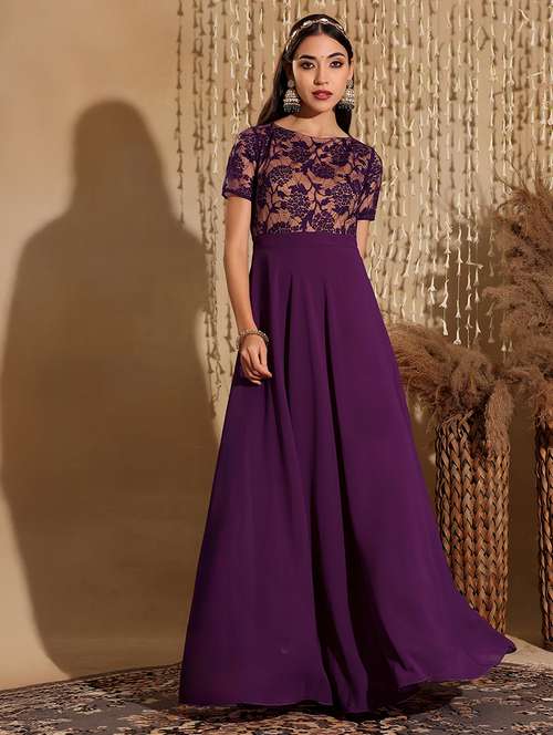 women self designed short sleeve lace fit & flare dress