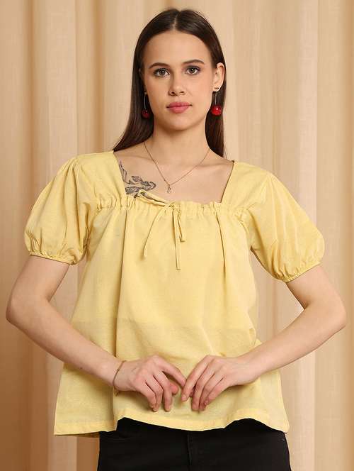 women solid puff sleeve a-line top