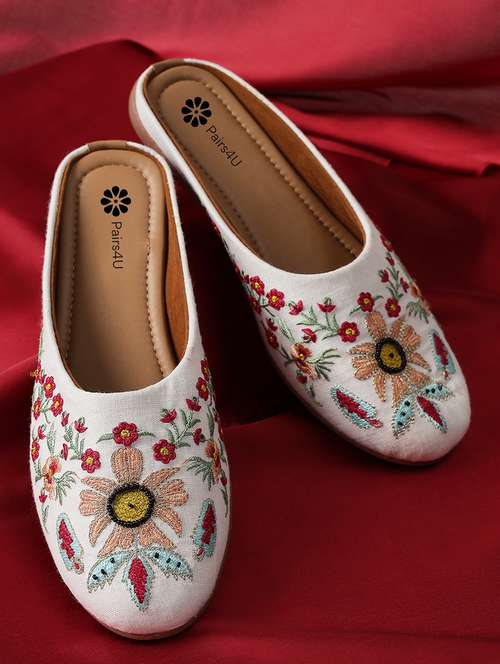 women embroidered slip on jutis