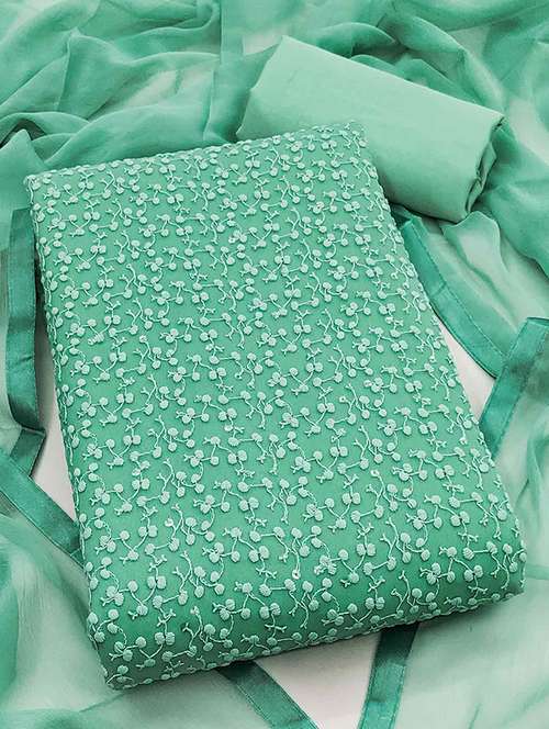 embroidered unstitched suit set with dupatta