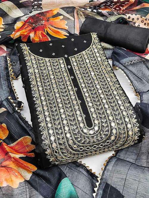 embroidered unstitched suit set with dupatta