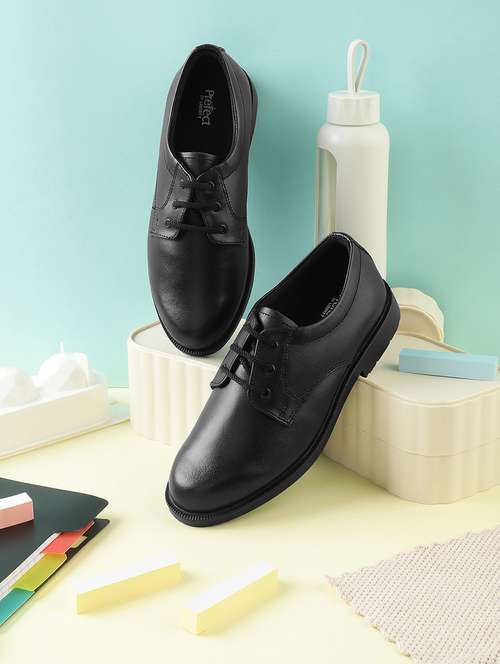 boys solid lace up uniform shoes