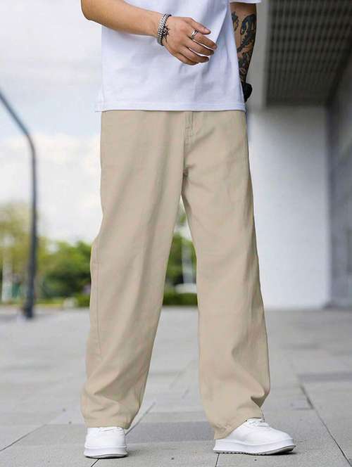 men plain mid rise full length baggy jeans
