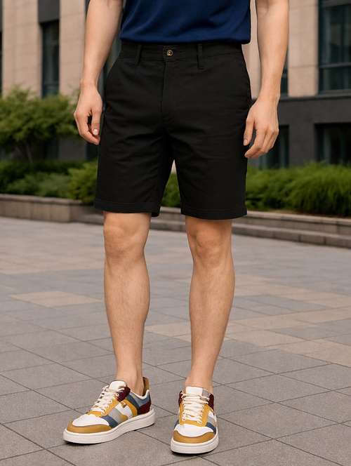 men solid mid rise regular fit shorts