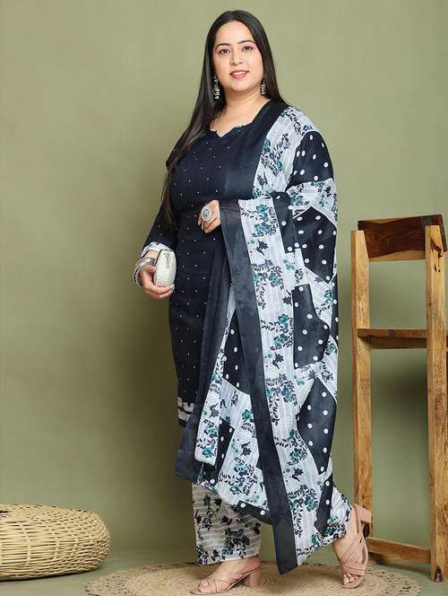 women printed plus size kurta salwar with dupatta set