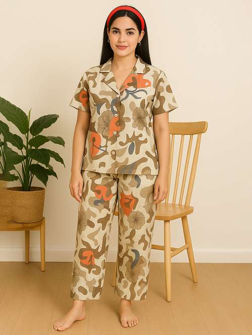 women printed nightwear pyjama set