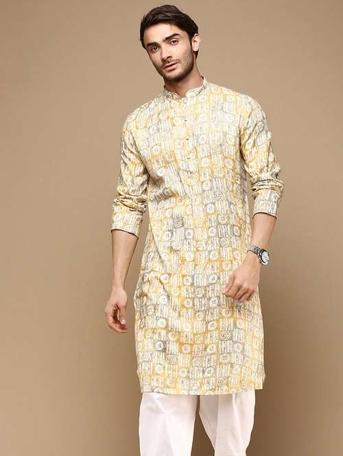 men printed long sleeve kurta