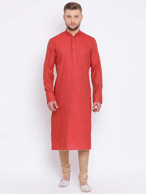men self design kurta and churidar set