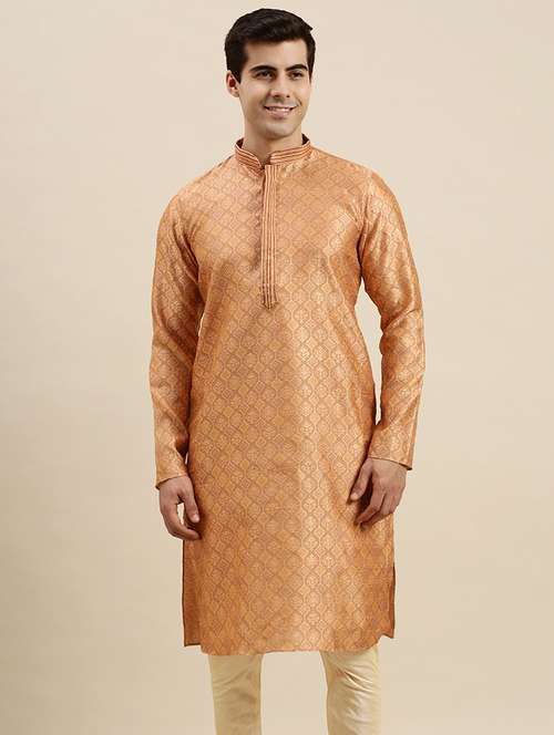 men self design mandarin neck long kurta