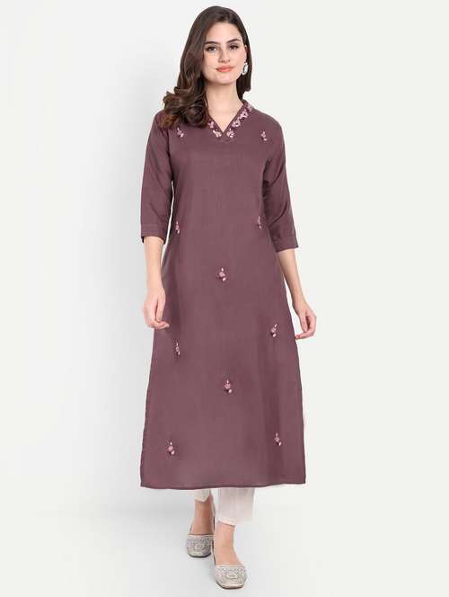 women embroidered three quarter sleeve kurta