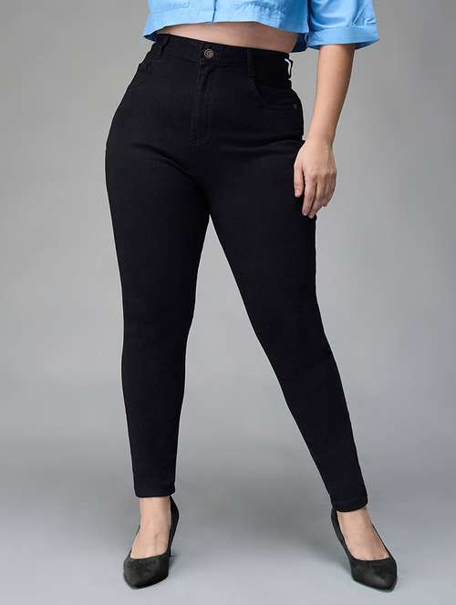 women solid high rise skinny jean