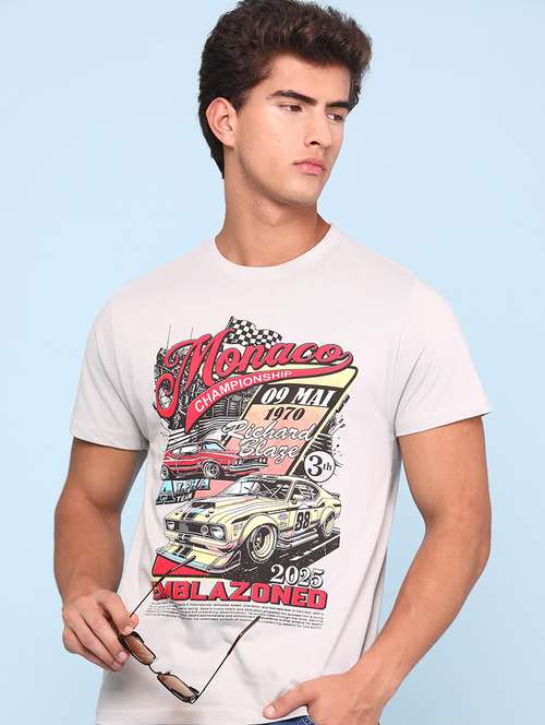 mens grey cotton blend plain t-shirt