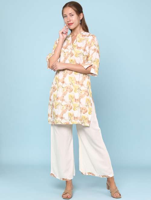 women printed three quarter sleeve kurta palazzo set