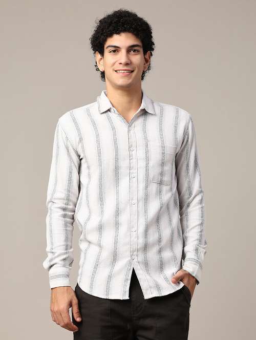 men striped long sleeve slim fit casual shirt