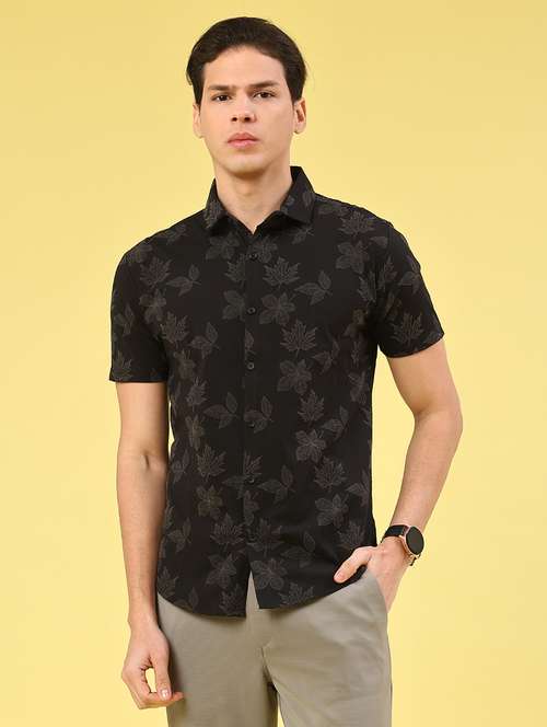 men printed short sleeve slim fit casual shirt