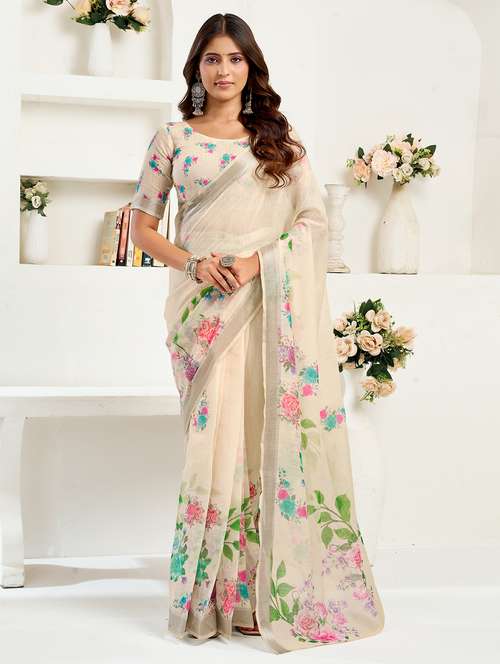 women floral printed ready to wear saree with blouse