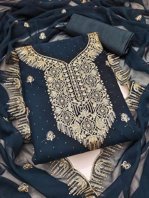 women embroidered three quarter sleeve kurta pant with dupatta set