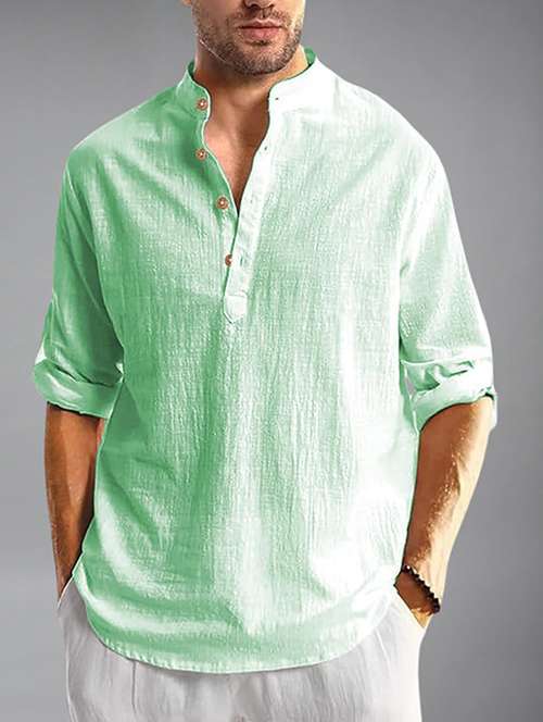 men solid mandarin neck short kurta