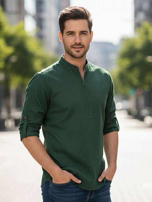 men solid mandarin neck short kurta