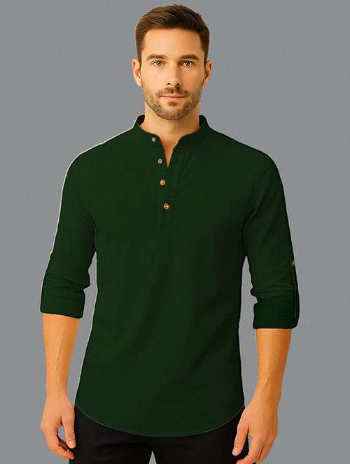 bottle green solid short kurta