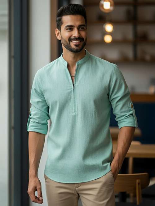 men solid mandarin neck short kurta