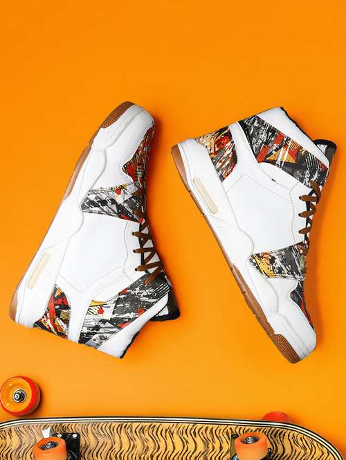 men printed lace up high ankle sneaker