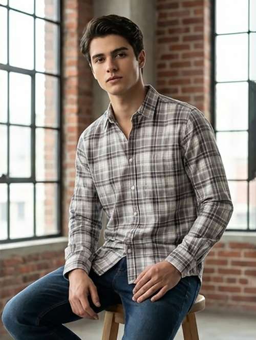 - » men checkered long sleeve regular fit casual shirt