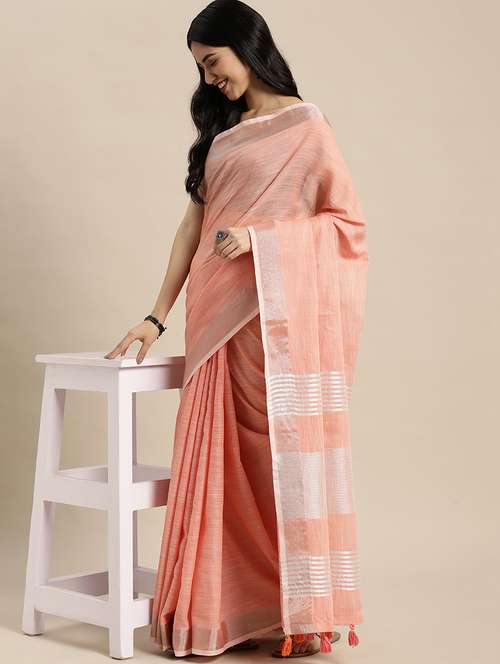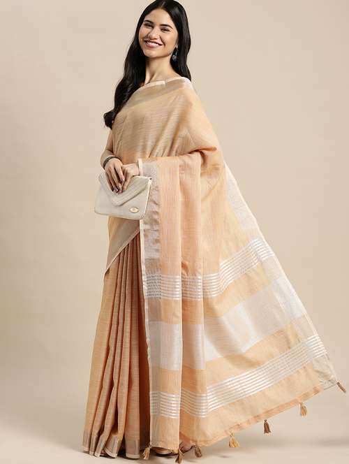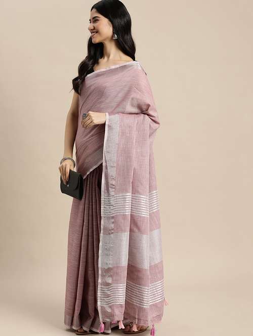 This Brown linen saree wraps you in comfort and grace, with delicate zari borders and tassels that add just the right touch of tradition. Perfect for days when you want to feel effortlessly beautiful.