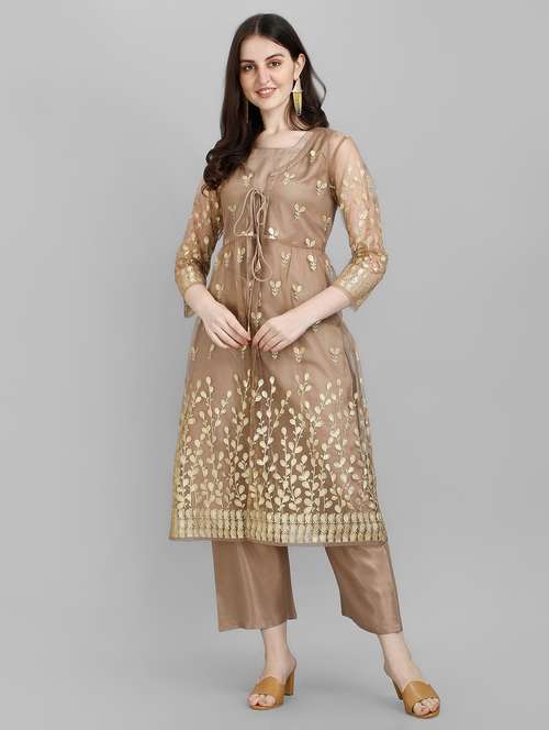 - Find gorgeous sets of ethnic wears in trending designs in brown colors suitable for festive wear of occasions.