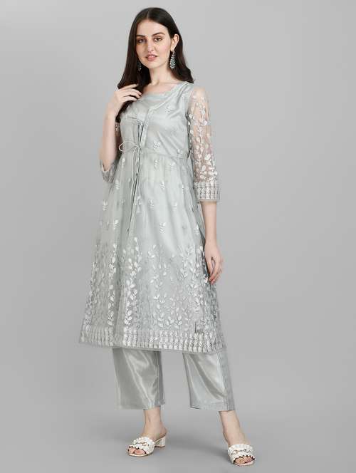 - Browse through the latest range of ethnic sets for women with tailored sleeve designs with traditional works.
