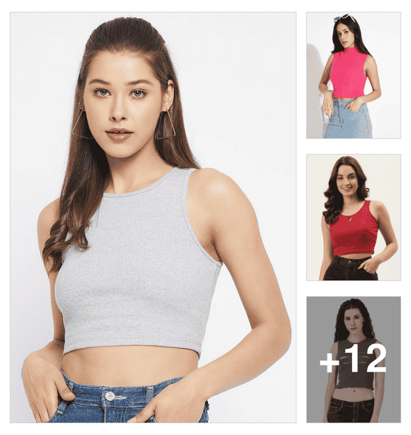 women round neck solid crop top