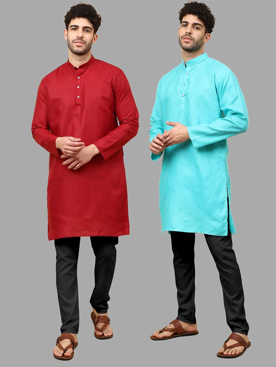 Pack Of 2 Mens Simple Stright 2 Kurta And 2 Black Pyjama Only