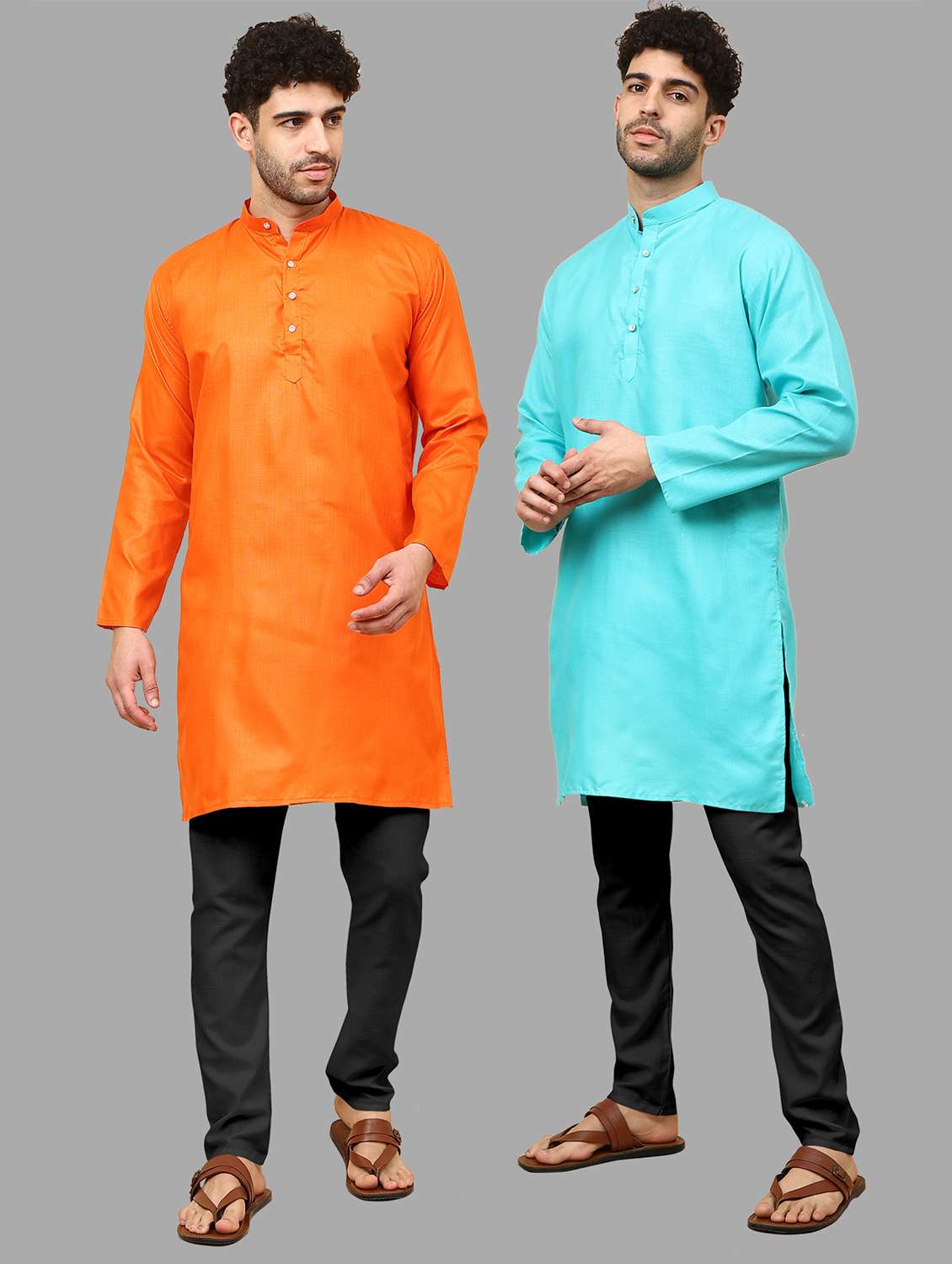 - » men pack of 2 solid mandarin neck kurta pyjama ethnic wear set